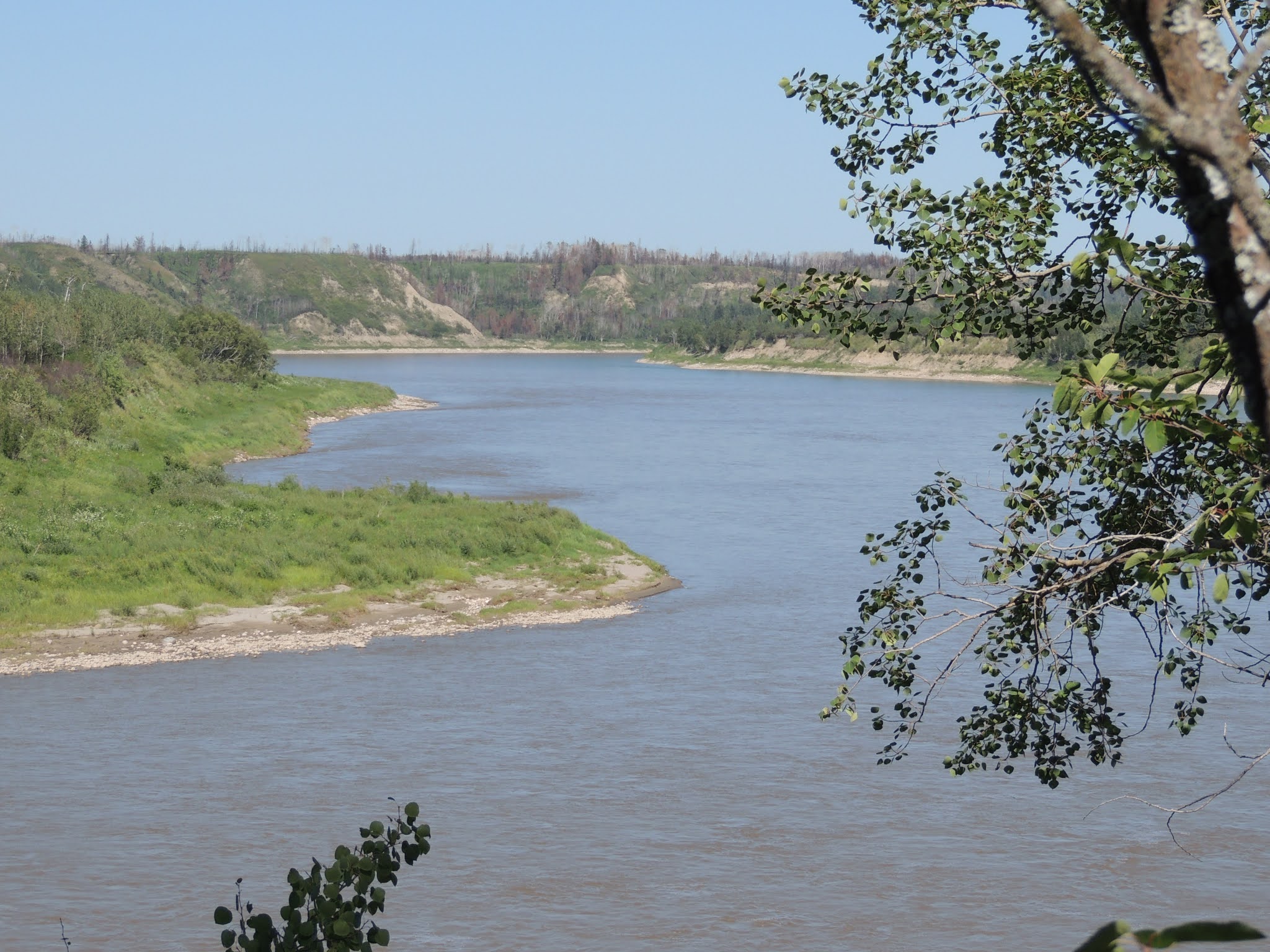 The Forks: view from the top of the trail (parking lot) of the Saskatchewan River, with the North Saskatchewan on the left, and the South Saskatchewan on the Right.